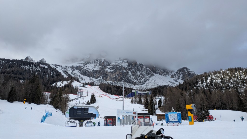 Probably the toughest part of the day. The temperature had dropped and all of the surfaces were starting to freeze. The spectator exit crossed the only single track road on and off the mountain for work vehicles with no one observing an sort of caution. It was like ‘The Italian Job’ for mini buses, cars and people.