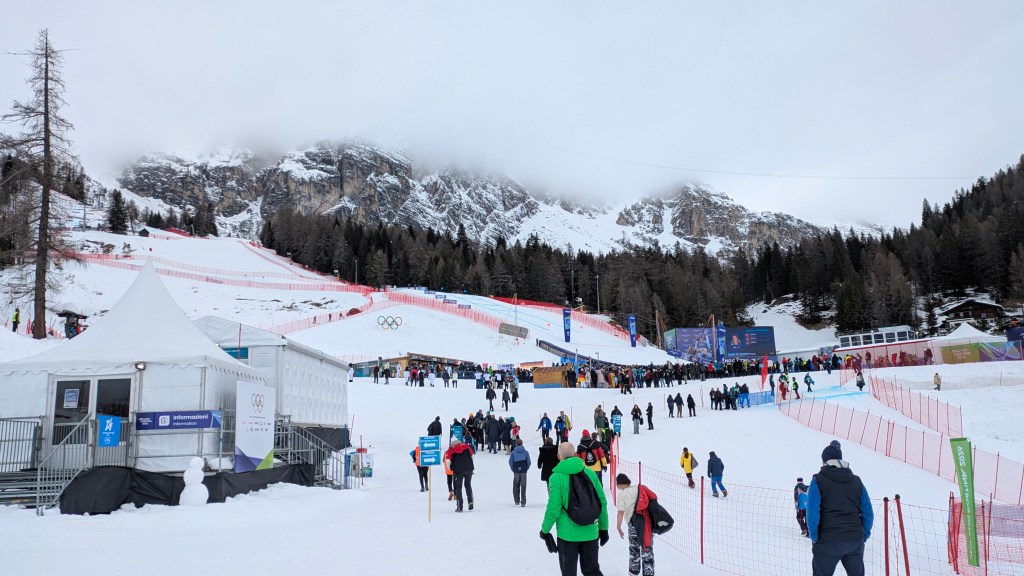 Women’s Super G Day! Delayed start due to the weather, too much cloud for the emergency helicopters to land.