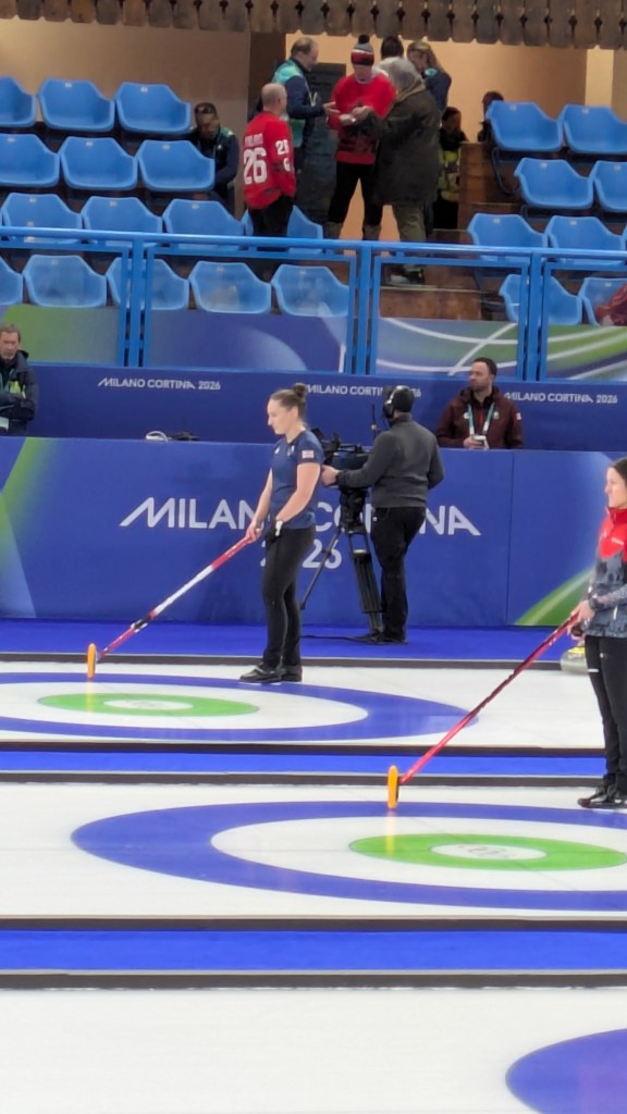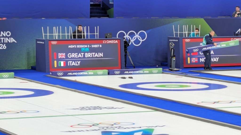 It ws interesting to watch how they prep the rink/sheet ready for a busy day of matches including GB’s men and women. When watching on tv the perspective of the length on the rink / sheet is deceptive, they are not as long as they look on tv.