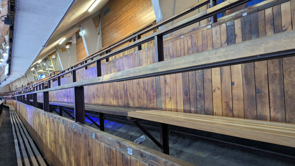 Today I spent some of my shift in the wooden tribunes. You would certainly need a cushion to sit there for a few hours. The bonus is that you get a birds eye view!