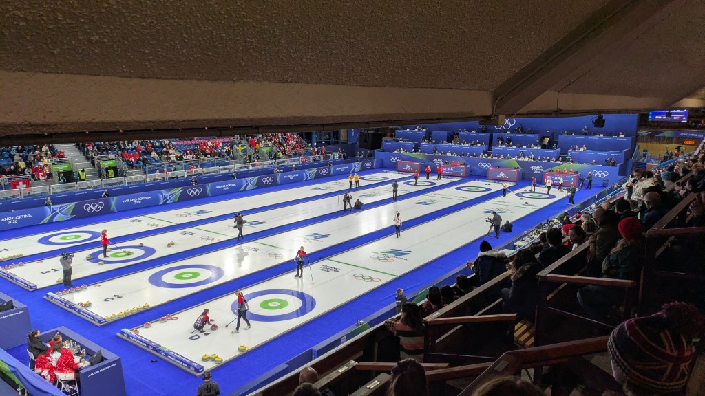 Yet another great day at the Curling Centre, meeting and greeting people from all over the world. Language has not been a barrier in communicating at all. My few months of learning Italian via Duolingo served me well. I discovered my own little system of how to greet people. Check out their bobble hats or flags for clues of where they were from and then greet them with the appropriate ‘hello, ciao, guten morgen, buongiorno, hola and good morning’. Spotting fellow Brits was always amusing, the look of surprise when saying “good morning!” They would often do a double take and then say “you don’t sound very Italian”.